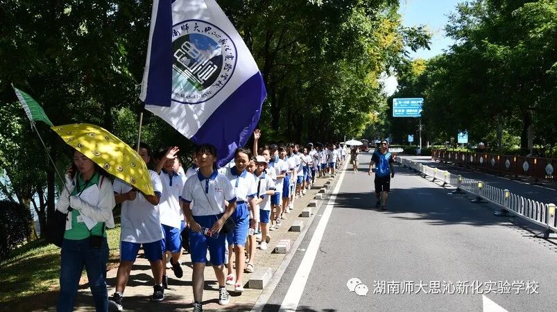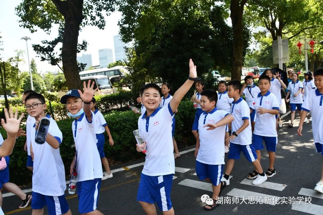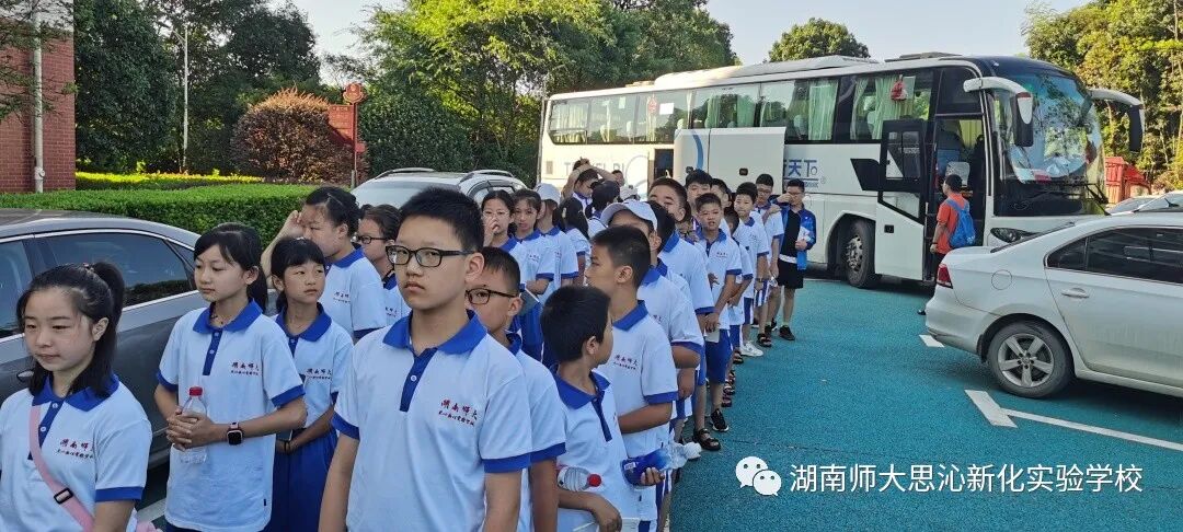 16日下午14:00,在桃子湖路右拐,远远的看到有人在向我们招手,热情的师大附中金牌教练、年级组长李海汾老师早早的来到了校门口迎接我们,各营迅速下车整队,怀着无比激动的心情,走进了这所美丽而神圣的学府——湖南师大附中。刚一进门就出现了一个小插曲,原来是有人在这里拍电影,同学们被演员们精彩的演绎吸引了,导演看到这群可爱的孩子,也停下了手里的摄像机,让孩子们先走过去。虽然没有看到著名的主持人何炅和李维嘉,也没有看到易烊千玺和张艺兴,但是他们看到了电影拍摄现场和演员,还是收获很大。