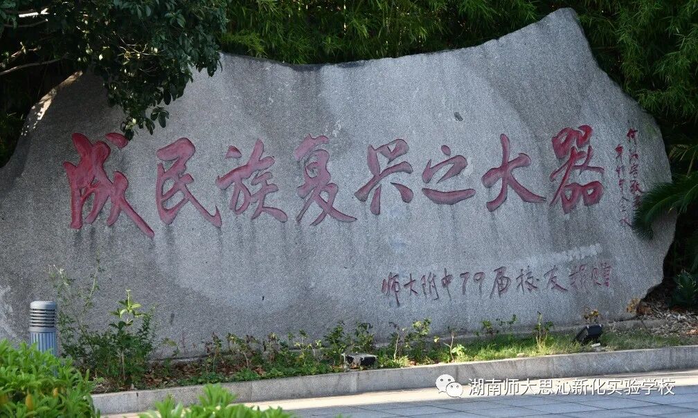访百年名校,寻沁园根基,继附中之魂。巍巍麓山,物华天宝。济济人才,尽出吾辈。求志达道,壮志凌云,世上新人超旧人。