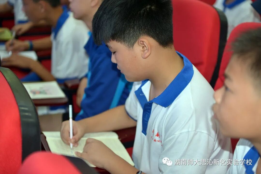 本次夏令营活动的最后一站,是我校的总部大本营,长沙思沁高级中学,总部的领导和老师们早已经为孩子们准备了丰富的学习大餐,初中部王章林校长和胡慧海校长亲自为同学们做了精彩的讲座,讲座围绕着语文和数学两大学科展开,对同学们今后的学习方法指明了方向,对学习知识技能做了精确的指导,对个性发展提出了理想的建议。同学们听的入神,老师们讲的精彩。