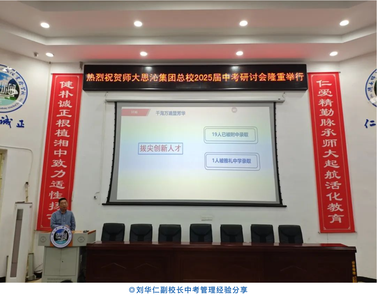 集团学校中考管理经验分享环节,刘华仁、刘军副校长慷慨分享,将学校在中考管理方面的 “锦囊妙计” 倾囊相授。从教学计划的精细制定,到学生心理的精准调适,每一个细节都蕴含着智慧与心血。