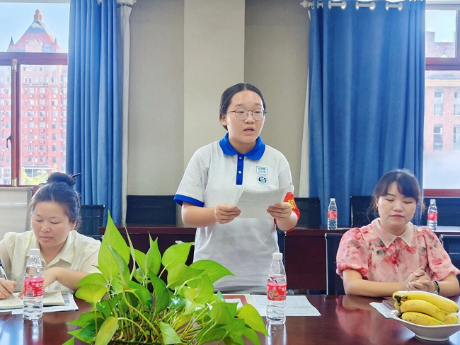高一学生张雅静发言:今年是我在思沁学校的第四年,同时也是吃思沁饭的第四年,从一开始的抱怨,到后来逐渐的接受,到现在的豁然开朗,有许多的话想今天表达,我对食堂比较细致的观察,也回顾了我这几年的用餐体验,并访问了几个班的同学,得到了许多的好评。我们的食堂除了色美味鲜,还安全和卫生。我们食堂有核心 ,有随实际情况而变动的就餐制度。